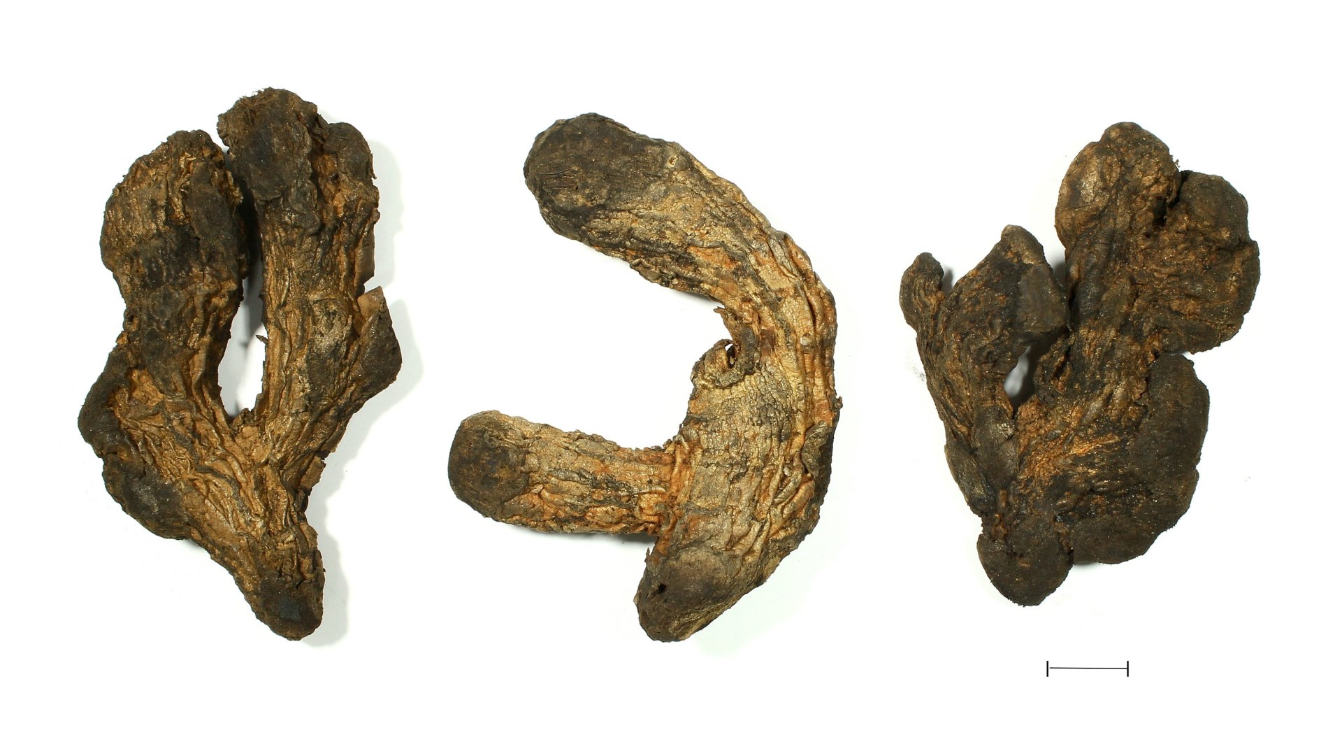 3.姜炭:取干姜块,至热锅内,用武火炒至表面黑色。