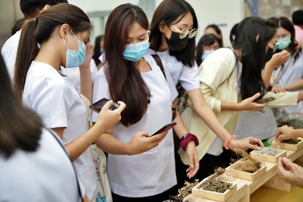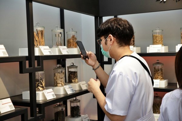 据了解,为了对中药材的高效管理和科学存储养护,华侨中医院于2016年10月在暖武里挽县建成了总面积约为1,440平方米的中药药库。目前共储存中药饮片300多个品种。内设太阳能烘干室、中药库房、中药材展览室和中药炮制室。中药材展览室—“华侨中药综合学习中心”共展有300 种中药材,分为五个展览区,分别为地道药材展区、中药炮制展区、中泰药材展区、有特殊规定用药的展区(卫生部规定禁用或对用量用特殊规定的)以及其它药材展区。所有展示的中药材品种都有QR 扫描码,能够显示出药材的相关内容,设有中泰英三种语言。通过这一展室学生们了解了各种道地中药材在中国的产地分布情况;中药仓库区域,讲解员向学生们讲解了药库的详细工作流程、在库药品养护操作规程以及仓库安全防火制度等。