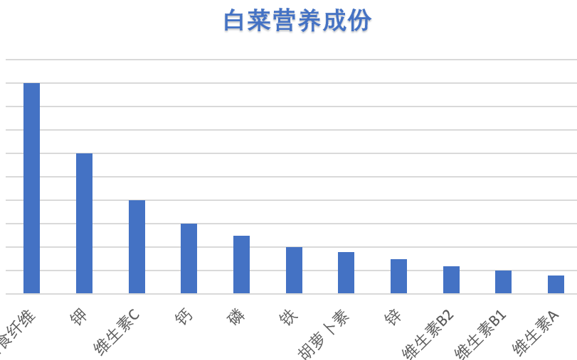 一杯熟大白菜汁儿能提供几乎与一杯牛奶一样多的钙,所以少食乳制品的人群可以通过食用足量的大白菜来获得更多的钙。