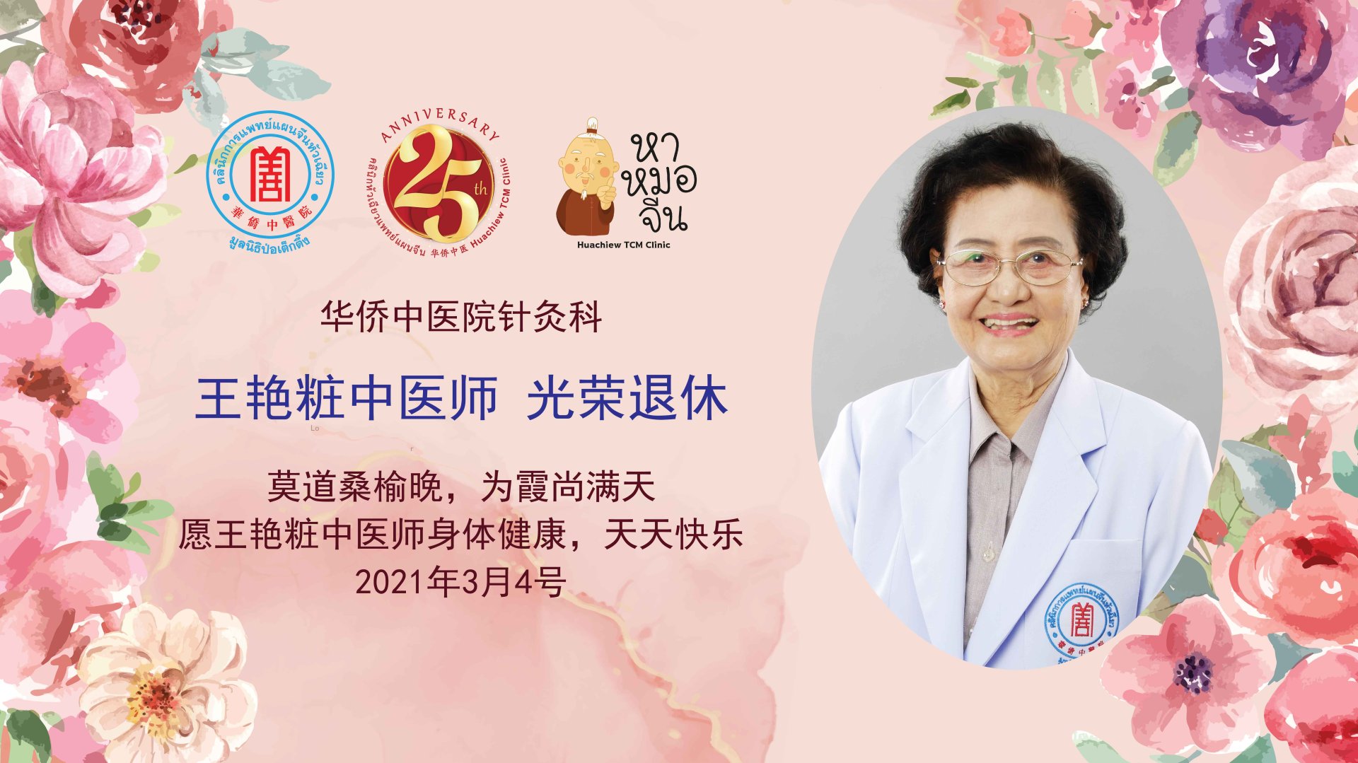 今日,华侨中医院针灸科85岁高龄的王艳粧中医师正式退休。医院领导和医务人员为她举行了隆重的退休欢送会。欢送会一开始,工作人员播放了为王大夫精心准备的小视频,一张张照片,一段段视频,记录了20多年来王大夫治病救人、与同事朝夕相处、悉心指导实习学生的点点滴滴。看完视频,在座者无不感慨和泪目。