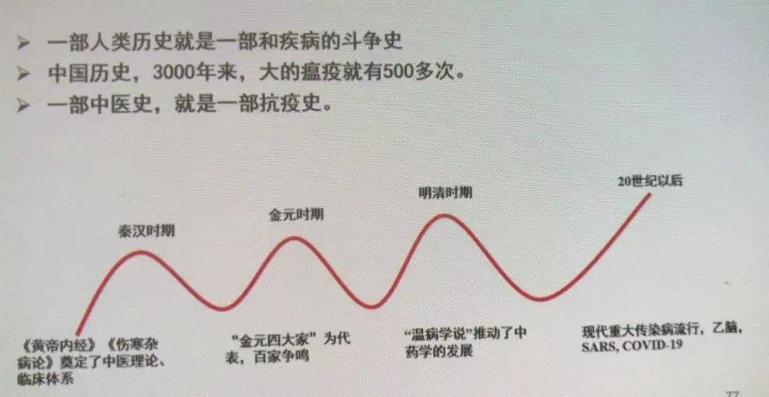 今天的中医,在面对新冠病毒的治疗和预防仍然发挥着重要作用,就像武汉方舱医院的群防群治和中、重症患者的一人一方施治,都体现了中医中药治疗的重要性……