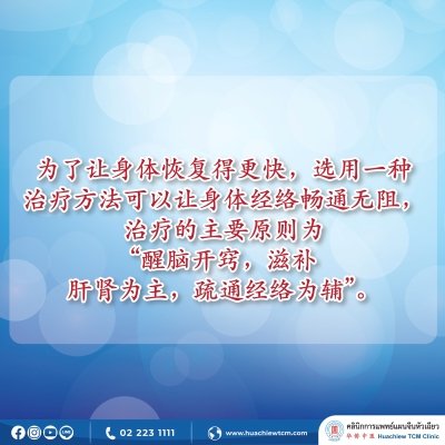 为了让身体恢复得更快,选用一种治疗方法可以让身体经络畅通无阻,治疗的主要原则为“醒脑开窍,滋补肝肾为主,疏通经络为辅”。