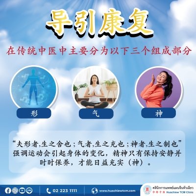 中风引起肢体瘫痪后,针灸是在危急时使用的第一治疗方法。在古代,还有另一种辅助康复法叫做导引康复运动,根据泰国华侨中医院导引康复中医师的经验发现,针灸与导引相结合,能更有效地增强疗效,这种方法采用了独特的中医针灸和导引相结合的方法。此方法必须通过神经康复治疗后才能进行导引康复。