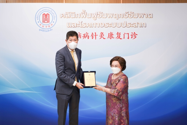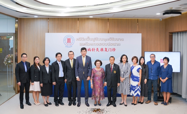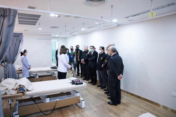 3月1日早上10点华侨报德善堂董事长郑伟昌博士和华侨中医院蚁凡院长亲临8楼为脑病针灸康复门诊正式开放服务揭幕,泰国风扇第一国民品牌Hatari董事长Mr. Joon Wanawit的夫人及家庭成员一同参加揭幕仪式,并给华侨中医院捐赠1000万泰铢作为资助购买医院医疗设备。