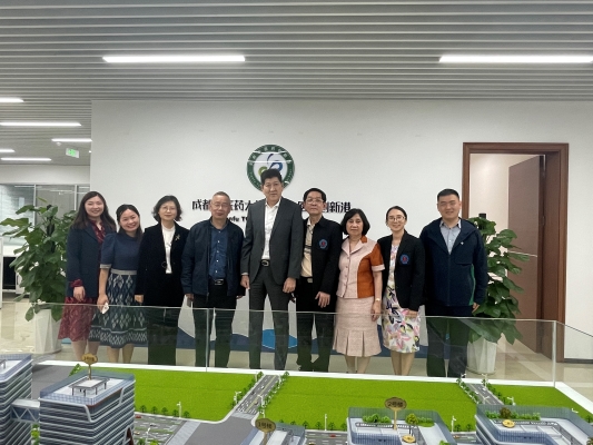 2023年4月26日,泰国华侨中医院院长蚁凡,行政处副院长周少华、医务处副院长谢强明、国际合作处副院长陆梅瑰和教研处经理蔡佩玲一行5人到成都中医药大学参观访问,并签订合作意向书。