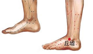 丘墟穴丘表示土堆墟表示山此穴位于足外踝的前下方,当趾长伸肌腱的外侧凹陷处。