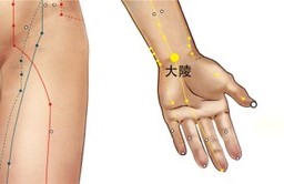 大陵穴大陵表示大陵表示土丘此穴位于腕掌横纹中点,当掌长肌与桡侧腕屈肌腱之间凹陷处。