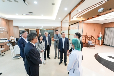 2024年4月4日,上海中医药大学曹锡康书记莅临参访泰国华侨中医院,随行的领导还有上海中医药⼤学附属⻰华医院院⻓陈跃来教授,上海中医药⼤学附属曙光医院院⻓房敏教授和上海中医药⼤学附属岳阳中⻄医结合医院院⻓周嘉教授以及上海中医药⼤学国际教育学院院⻓韩丑萍教授。