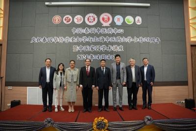 当天下午,在华侨崇圣大学分校区礼堂举行了一场名为:中国-泰国中医药中心,庆祝泰国华侨崇圣大学与上海中医药大学合作20周年暨中医家园的学术讲座。此次学术讲座聚集了线上与线下共1650多位来自泰国的中医师参与。开幕式由华侨崇圣大学邬莱攀校长致辞,上海中医药大学曹锡康书记也发表了热情洋溢的致辞,泰国卫生部泰医和替代医学司替代医学局固塔尼.瓦拉纳博士也发表了致辞。大家就上海中医药大学和泰国华侨崇圣大学合作20周年取得的成就做出了肯定,不仅促进了两国中医药文化的传播,更为中医药人才的培养贡献了力量。未来,中泰双方将继续携手合作,为中医药事业的发展不懈努力。