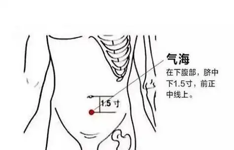 (CV6)气海穴位于 腹正中线上脐下 1.5 寸处。