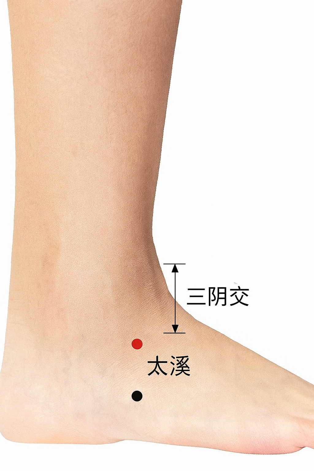 定位:位于小腿内侧,内踝尖上3寸,胫骨内侧缘后方。