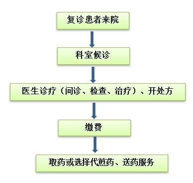 3)自煎药须等待40分钟到一个小时;代煎药须等两到三个小时;颗粒剂须等待40分钟。如没有时间等待,可联系药房选择送药服务。